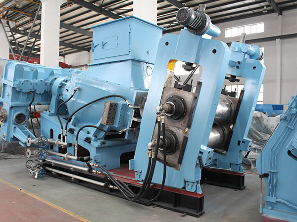 صُممت الماكينة بتصميم مدمج، مما يحسن بشكل كبير من سهولة التركيب. كما يتم تشغيل نظام النقل باستخدام محرك متغير التردد أو محرك تيار متردد. فضلاً عن ذلك، يتم تركيب كاشف مستوى على ماكينة البثق المزدوجة اللولب للتحكم تلقائيًا في سرعة البثق والتقويم. كما أن البكرات مصنوعة من الحديد الصلب المبرد، وتأتي البكرات بهيكل مجوف، ومخفض التروس مصمم بسطح مقوى من أجل تقليل التآكل. كما يوفر الخلاط المطاطي تكلفة العمالة وهو إضافة اختيارية. كما يتم دفع بكرة السحب باستخدام محرك متغير التردد، وبالنسبة للمكونات الدوارة على وحدة البثق، يتم استخدام براغي ترددية وهيدروليكية.